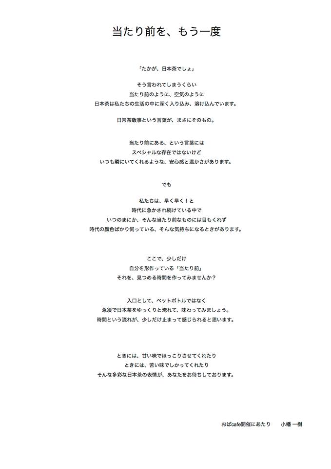 10:00〜10:15 おばcafe 「運動前に飲むお茶って?」