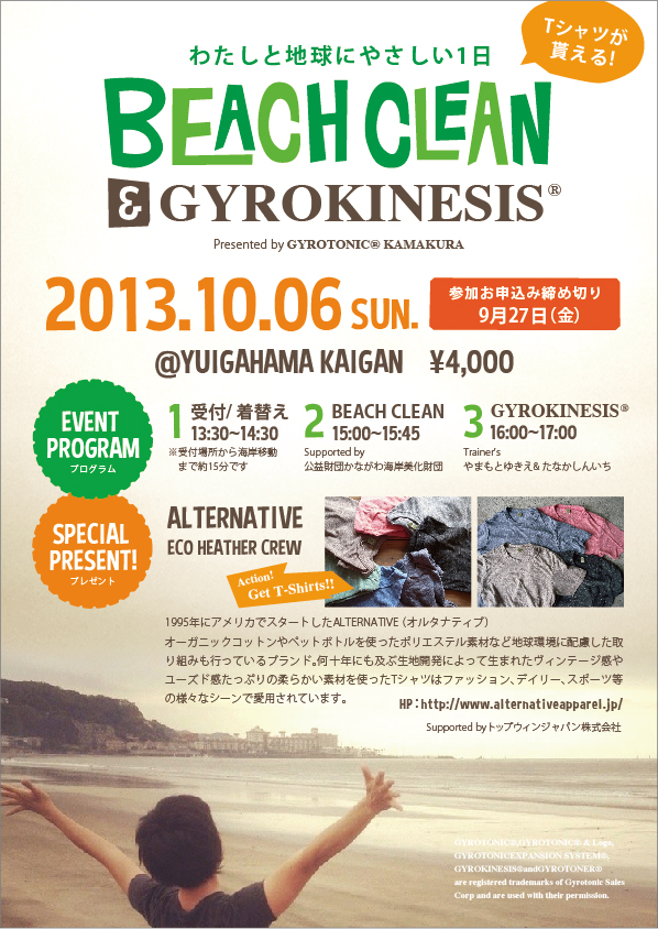 【10/6】ビーチクリーン&ジャイロキネシス ~わたしと地球にやさしい1日~